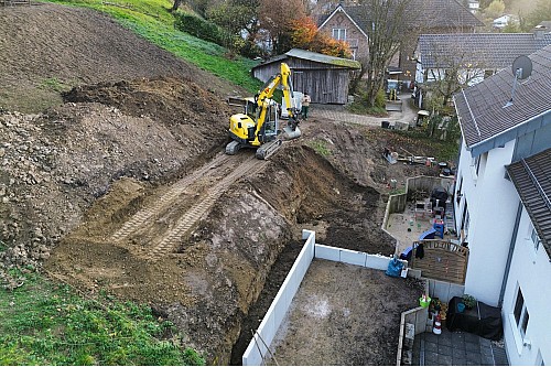 Auf unserer Baustelle in Hennef wird aus starkem Gefälle nach …
