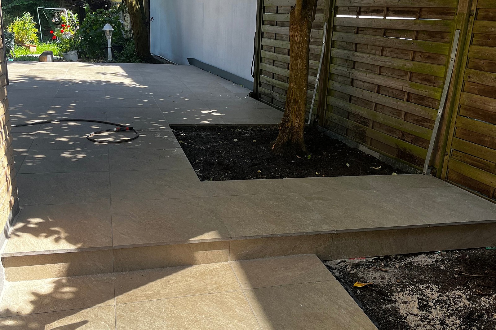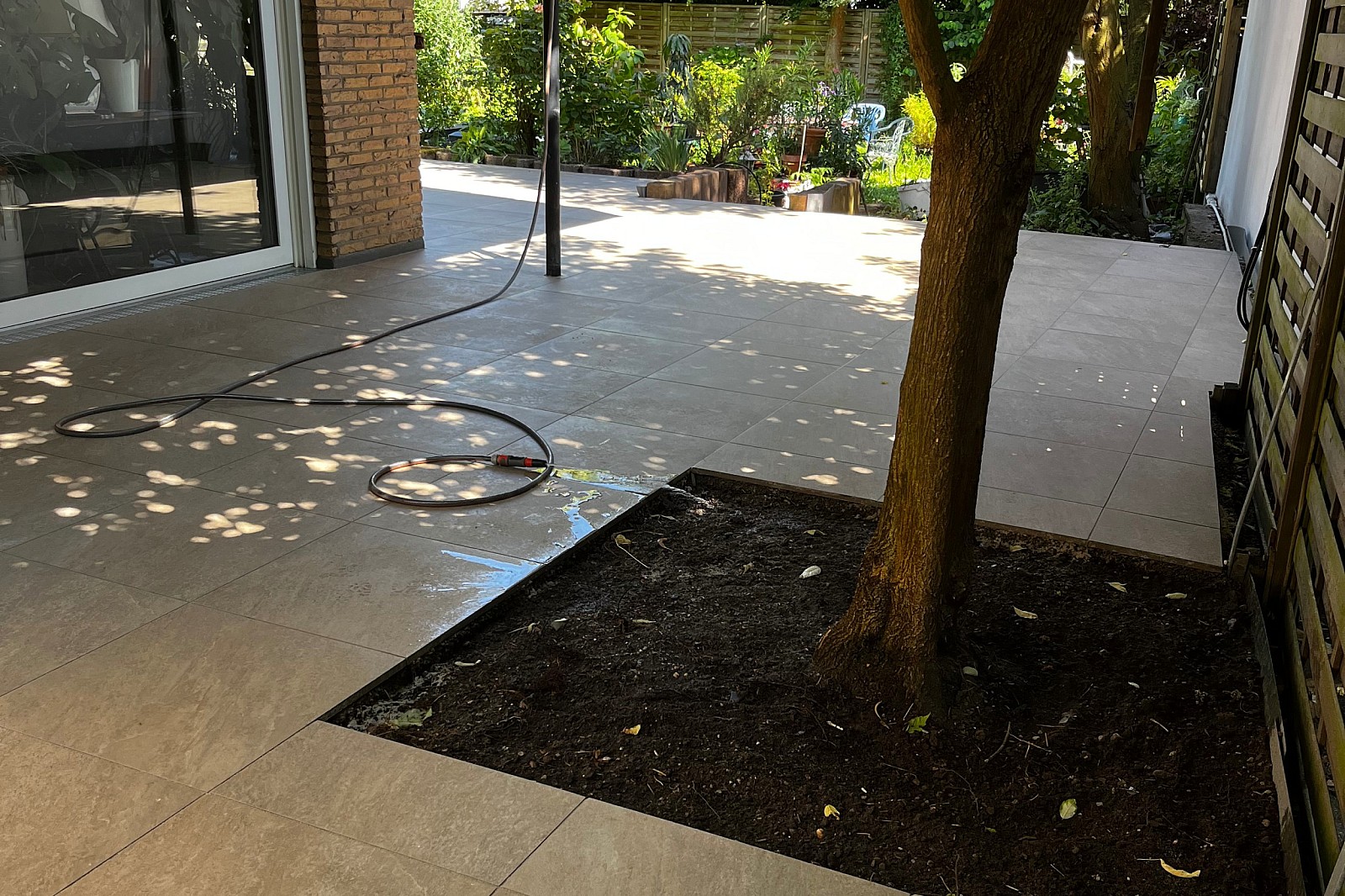 Die durchgehenden Flächen unterstützen eine fließende Verbindung zwischen Innen- und Außenraum. Selbst bei kleineren Terrassen entsteht der Eindruck von Weite und Offenheit. Gleichzeitig tritt das Material stärker in den Vordergrund, wodurch Farbe und Oberfläche besser zur Geltung kommen.