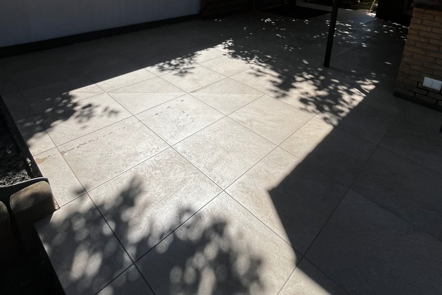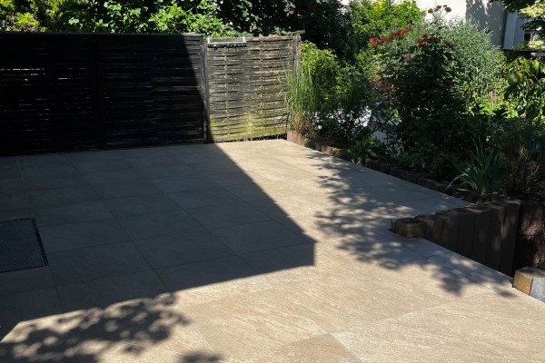 In Köln wurde die Serie Redsun Messina Giallo auf einer privaten Terrasse in einem modernen Wohnumfeld verlegt. Die warmen Sandtöne der Platten fügen sich stimmig in die bestehende Architektur ein und erzeugen ein mediterranes Ambiente – trotz städtischer Umgebung. Das großformatige 60 × 60 cm Raster schafft eine ruhige, strukturierte Fläche mit klaren Linien und wenigen Fugen. Besonders gelungen ist der Übergang zu angrenzenden Grünflächen und Fassadenelementen, der ohne harte Brüche gestaltet wurde. Die leicht raue Oberfläche sorgt dabei für sicheren Halt, auch bei Nässe, was gerade im wechselhaften Rheinlandklima von Vorteil ist. Die Umsetzung zeigt, wie wirkungsvoll Keramikplatten sowohl gestalterisch als auch funktional in urbanen Außenbereichen eingesetzt werden können.