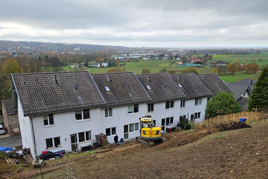 In Hennef realisiert Kalteis Garten- und Landschaftsbau ein anspruchsvolles Bauvorhaben in ausgeprägter Hanglage. Ziel ist es, aus starkem Gefälle klar strukturierte, nutzbare Gartenebenen zu schaffen – stabil, dauerhaft und optisch aufgeräumt.