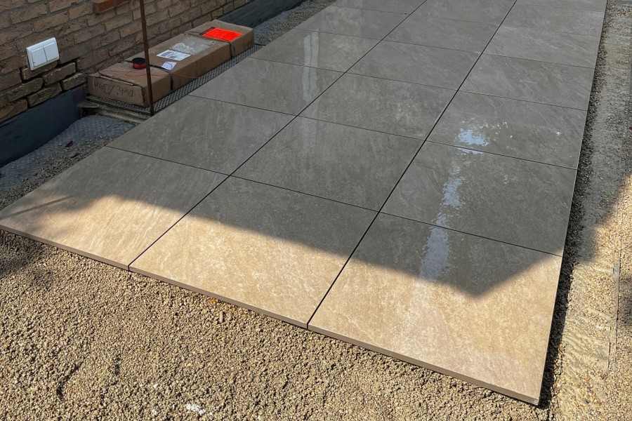 In Köln wurde die Serie Redsun Messina Giallo auf einer privaten Terrasse in einem modernen Wohnumfeld verlegt. Die warmen Sandtöne der Platten fügen sich stimmig in die bestehende Architektur ein und erzeugen ein mediterranes Ambiente – trotz städtischer Umgebung. Das großformatige 60 × 60 cm Raster schafft eine ruhige, strukturierte Fläche mit klaren Linien und wenigen Fugen. Besonders gelungen ist der Übergang zu angrenzenden Grünflächen und Fassadenelementen, der ohne harte Brüche gestaltet wurde. Die leicht raue Oberfläche sorgt dabei für sicheren Halt, auch bei Nässe, was gerade im wechselhaften Rheinlandklima von Vorteil ist. Die Umsetzung zeigt, wie wirkungsvoll Keramikplatten sowohl gestalterisch als auch funktional in urbanen Außenbereichen eingesetzt werden können.