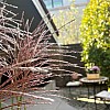 Neben den klar strukturierten Flächen sorgen Beetbereiche und Palmen für Abwechslung und Lebendigkeit. Sie setzen natürliche Akzente, die das strenge Raster der Keramikflächen auflockern und dem Garten eine warme Ausstrahlung verleihen. Die Pflanzenauswahl wurde bewusst so getroffen, dass sie ein ganzjährig attraktives Bild bietet. Blühende Stauden ergänzen die Palmen, während immergrüne Strukturen für Beständigkeit sorgen. Dadurch entsteht ein harmonisches Zusammenspiel zwischen Natur und Architektur.